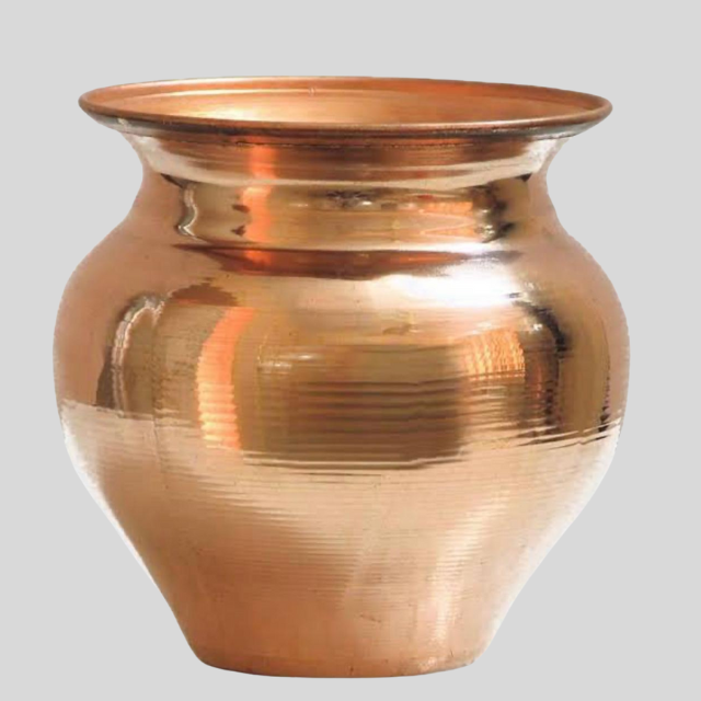 Crafted from pure copper, this Kalash is an essential item for traditional pooja ceremonies. Its durable and corrosion-resistant material ensures long-lasting use, while the natural antimicrobial properties of copper help maintain purity during rituals. Perfectly sized and designed for sacred water storage, it enhances the sanctity and authenticity of your worship practices. Ideal for both daily pooja and special religious occasions.